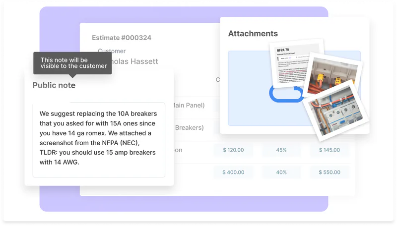 Create estimates and turn them into invoices fast, with staged billing for longer jobs.