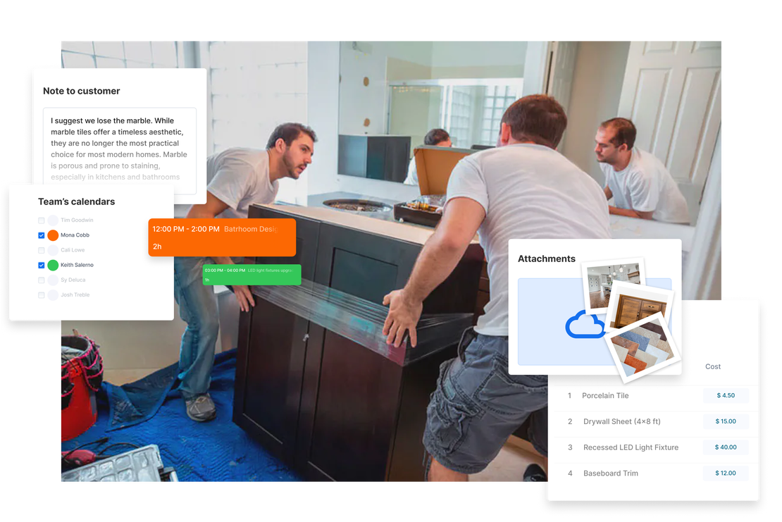 Keep remodeling jobs organized from start to finish. Track progress, responsibilities, and upcoming steps.